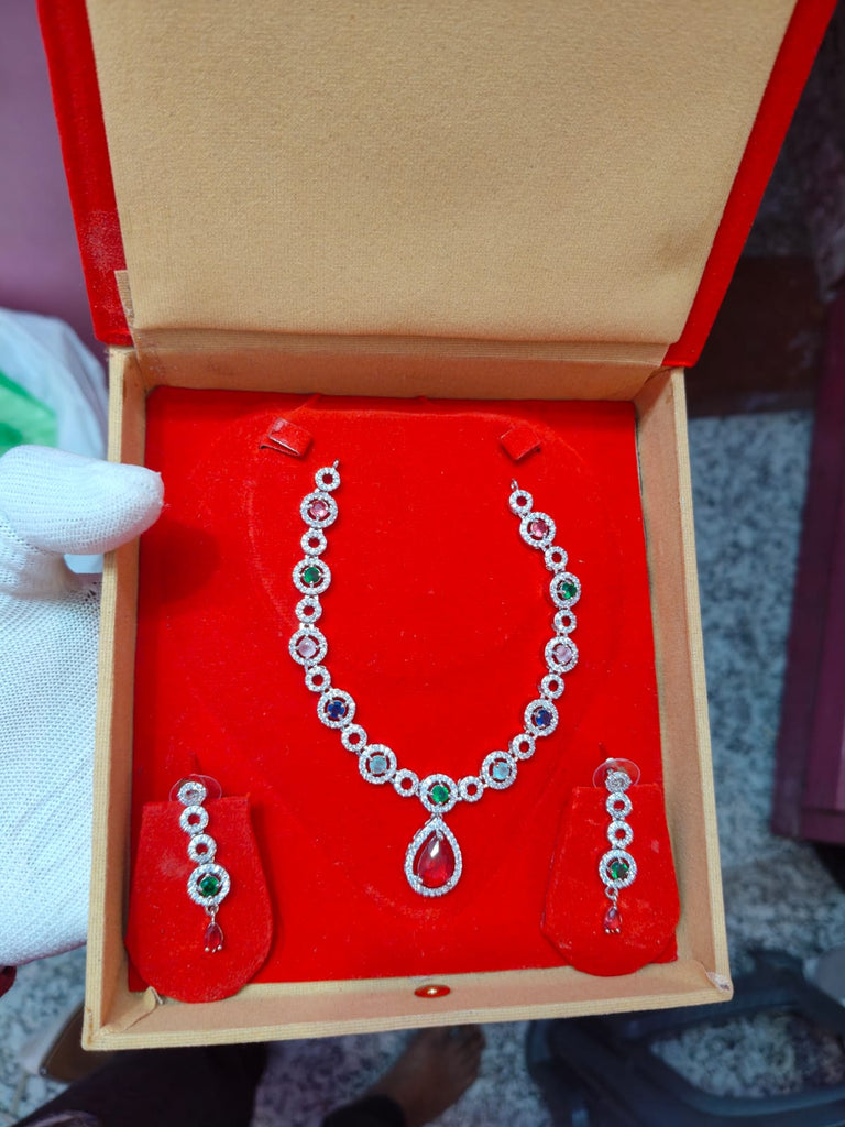 Plated with a high-lustre rhodium finish, the Emerald Symphony Set retains its radiance for years, ensuring you shine with confidence on every occasion.