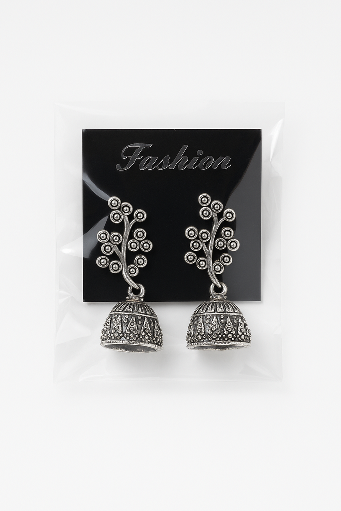 ๐๏ธ Antique Silver Floral Jhumka Earrings โ Ethnic Elegance